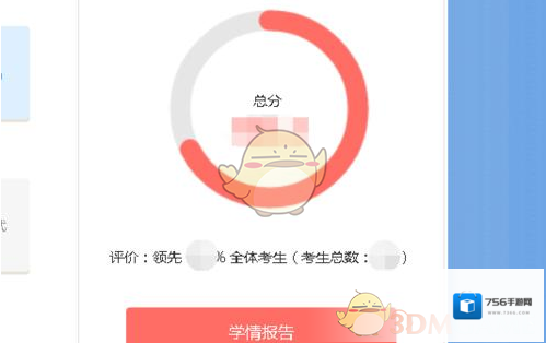 6、右侧的评价中显示领先百分数和考生总人数,可以根据百分数计算自己的排名。