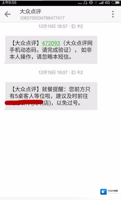 5、当大众点评当前客人只有5桌或更少的时候,大众点评就会给你发短信提醒你,让你尽快赶到就餐地点,以免过号。