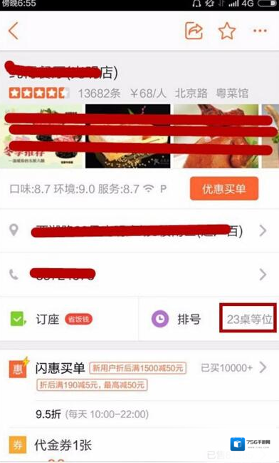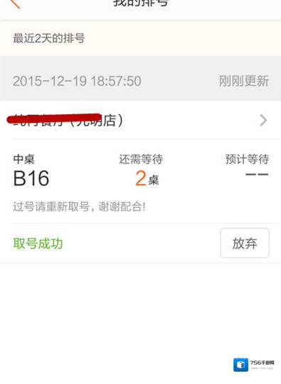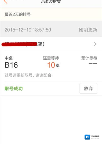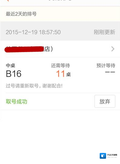 2、到了准备吃饭的时候,再打开大众点评客户端,去查看订单当前的排号情况,如下图。