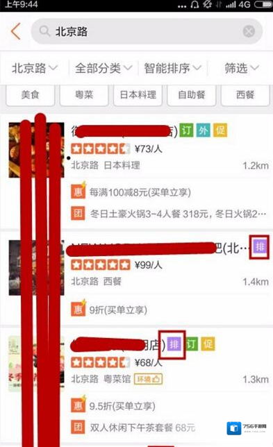1、打开大众点评客户端,进入到大众点评主界面,然后开始找美食,选择好你准备去吃饭的地点,注意只要该餐厅带有“排”字功能,我们才可以使用大众点评排号功能。