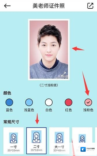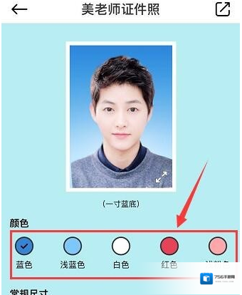 5、然后进入到证件照设置页面,页面中就有很多背景颜色可以选择