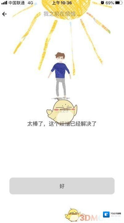 《解忧娃娃》解决烦恼教程 2025-07-10 09:28:39 编辑:流浪的终点 分类:应用教程 • 阅读:521 1、打开解忧娃娃APP后,在首页点击你的烦恼 2、然后点击“太棒了,这个烦恼已经解决了” 3、点击“是的,不再烦恼了” 4、点击“是” 5、点击“不了,谢谢” 6、最后可以看到,烦恼已经解决了。 发表回复 请登录后评论... 登录后才能评论 评论列表 (0条)