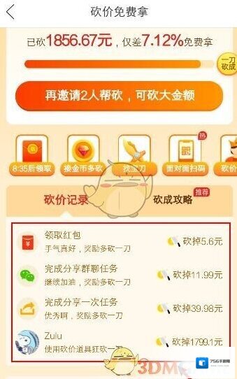 1、打开拼多多,在个人中心选择“砍价免费拿”