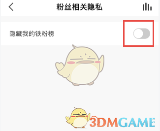 5、在粉丝相关隐私界面,即可设置隐藏我的铁粉榜。