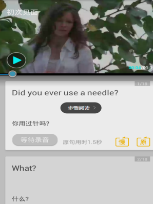 4、开启魔方后,片段播放一小段后停下,你只要长按下方的录音进行模仿录音。