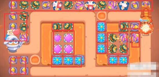 1、本关卡能够使用的炮塔为:雪花、导弹、魔法球、多重箭,主要使用的是多重箭。