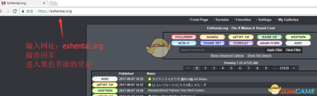 5、这个时候请打开里站网址:exhentai.org