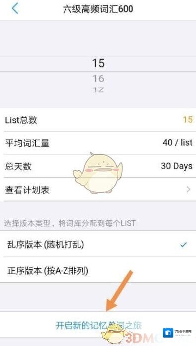5、设置“list总数、计划表”等信息,点击“开启新的记忆单词之旅”即可。
