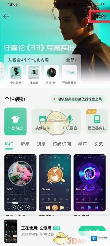 3、来到装扮中心的页面中点击右上角的我的;
