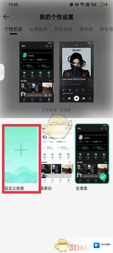 4、进入到我的页面中点击玄潭黑即可,也可以自定义背景。