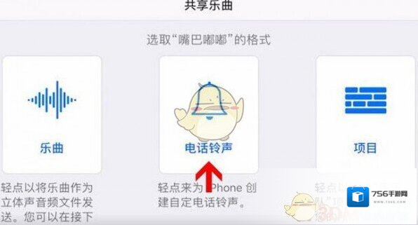 6、进入共享乐曲后,选择电话铃声,点击继续、导出