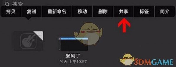 5、这时长按刚刚下载的歌曲,并选择共享