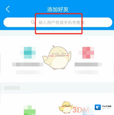 4、进入搜索界面,在搜索框输入好友名字、ID等;