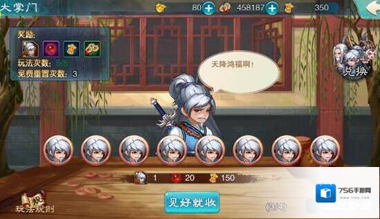 大掌门可以赢取一贫道长碎片、魂玉、门派贡献、铜钱等重要升级资源,每日都有五次试玩机会,还在等什么,快来试试手气吧!