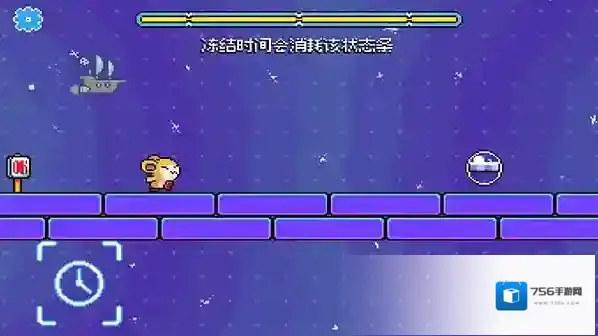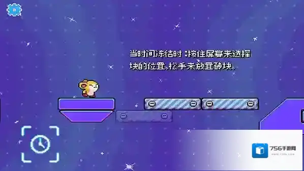 6、当时间冻结时,按住屏幕来选择砖块的位置,松开手来放置砖块,为POMPOM铺路,