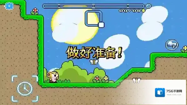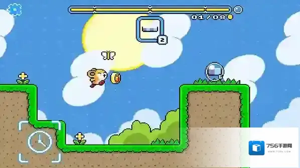 4、如图,做好准备开始闯关了,POMPOM会自行行走和跳跃,收集图中的金币和各种各样的道具,