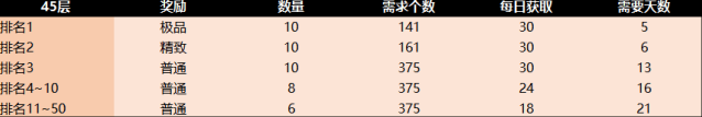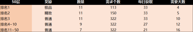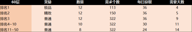 推荐:排名能第一尽量第一,伤害不够跟大佬们争的情况下,可退而求其次,去低层拿第一!排名第二可接受,第二跟第三的奖励差距较大!