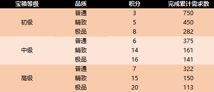 大家可根据上表,查阅下目前已备的宝箱,可预估下大致需求量!