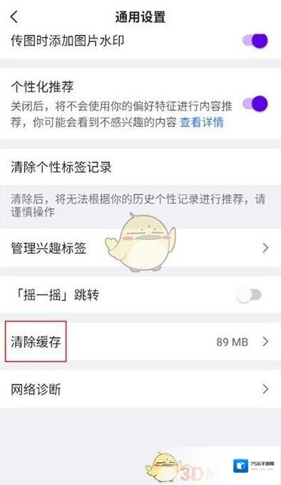 4、在通用设置功能下方的位置找到清除缓存,点击一下即可将软件缓存数据进行清除。