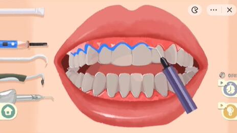 6、最后我们使用第1个道具对牙齿抛光即可过关。