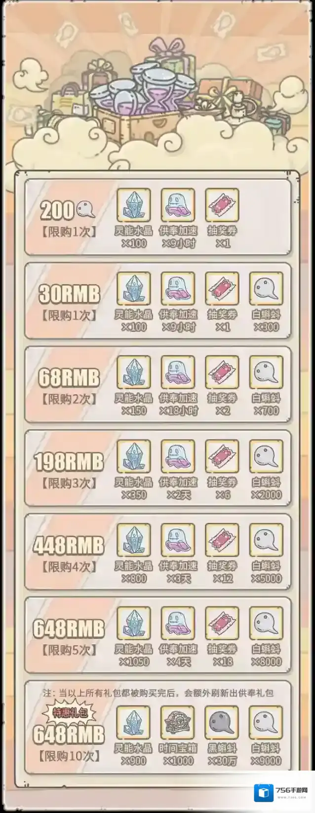 活动期间,贩售机将出现福利礼包每天5点刷新,售价1白蝌蚪。