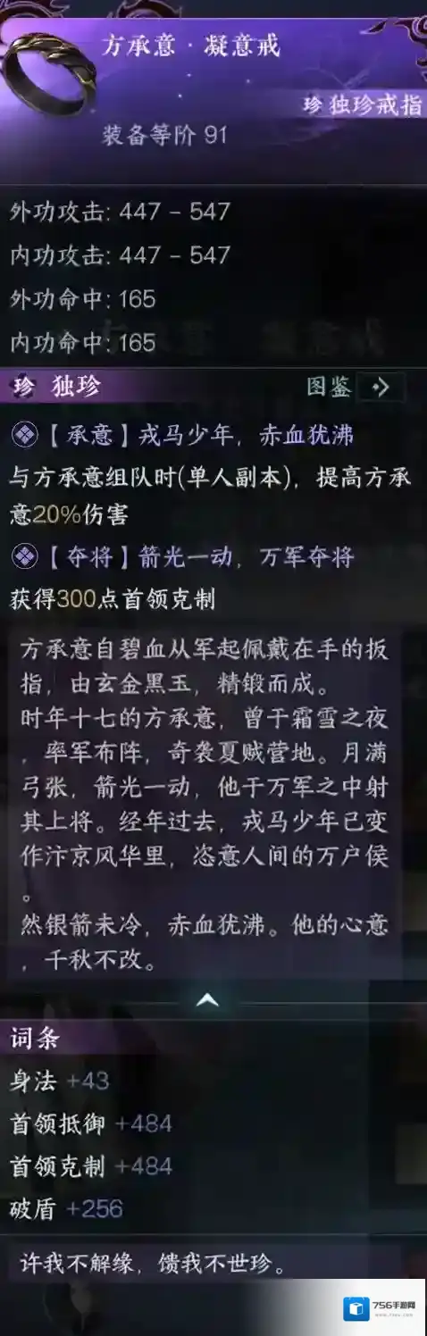 而在方承意的侠游任务之中,与小侯爷一道策马驭箭,听他倾吐彼年那些碧血峥嵘后,也可得到独珍戒指方承意·凝意戒。