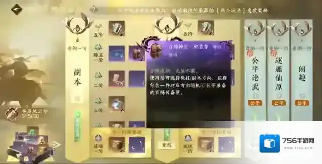 4琳琅战令琳琅战令中也有百炼装备作为奖励,供各位同门选择。而战令的升级方式异常丰富多样,消耗活力、获得风云令……无需过多努力,便能轻松提升等级。各位同门仅需达到30级,即可领取百炼装备,并且还可以根据个人喜好,选择竞技或副本方向的装备,让实力的提升更符合大家的心意。