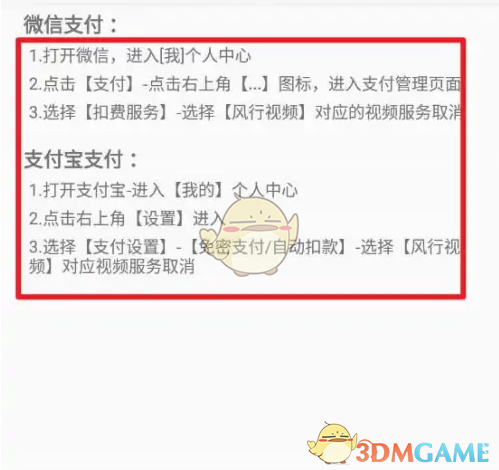 若通过微信支付,则打开微信进入“我”-“服务”-“钱包”-“支付设置”-“自动续费”,找到风行视频关闭服务;若通过支付宝支付,打开支付宝进入“我的”-“设置”-“支付设置”-“免密支付/自动扣款”,找到风行视频关闭服务;若为iOS系统,打开手机“设置”,点击顶部Apple ID进入“订阅”,找到风行视频取消订阅即可。