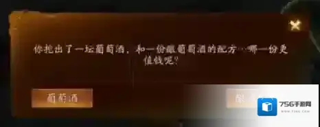 葡萄酒和配方哪个值钱?有待商榷。选择葡萄酒可获得天降鸿福,选择配方可获得若即若离隐身状态,也挺好玩的。