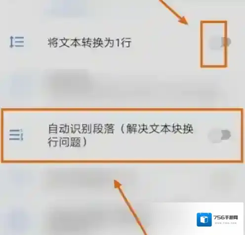 5.当“将文本转换为1行”的按钮圆点的颜色为灰色的时候,点击“自动识别段落”。