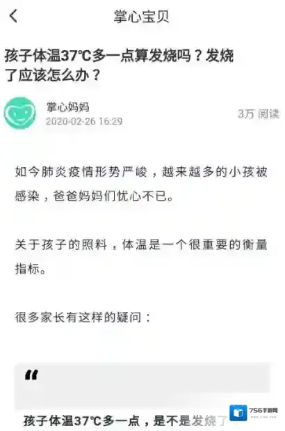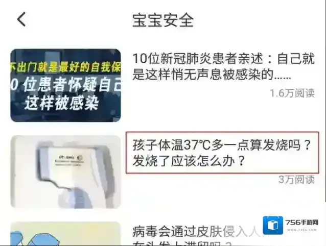 “宝宝安全”里面是针对宝宝生病的一些常识和建议,我们选择第二篇文章:孩子体温37°一点算发烧吗?发烧了应该怎么办?,点击文章;