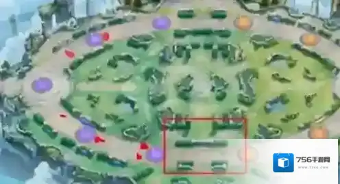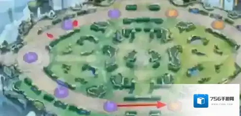 3、让队友站至图中的红色方框处,并且抢夺该处的野怪,之后再去箭头处投分。