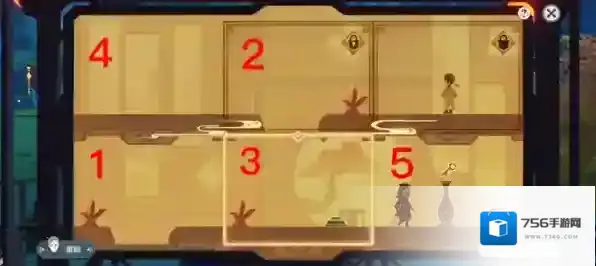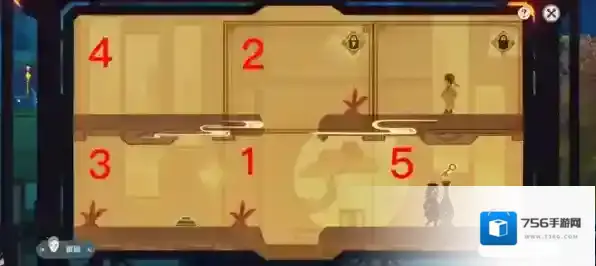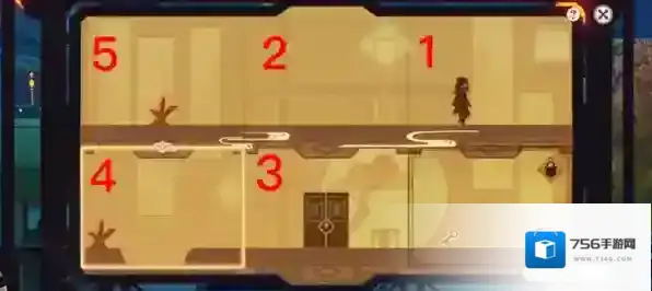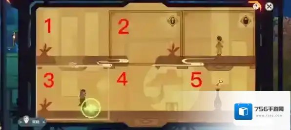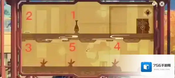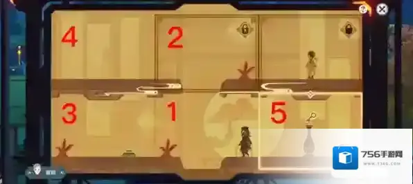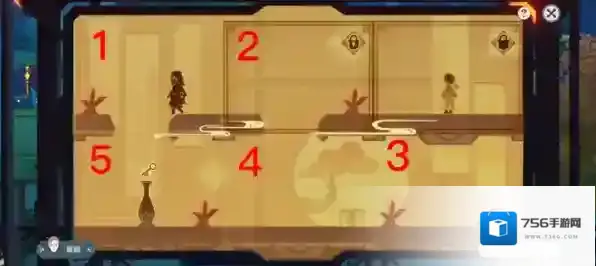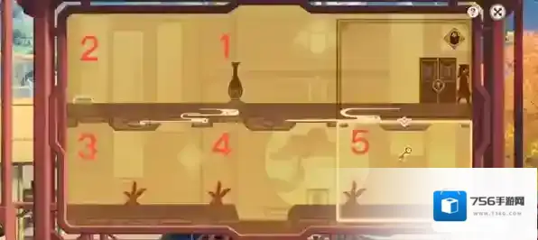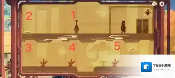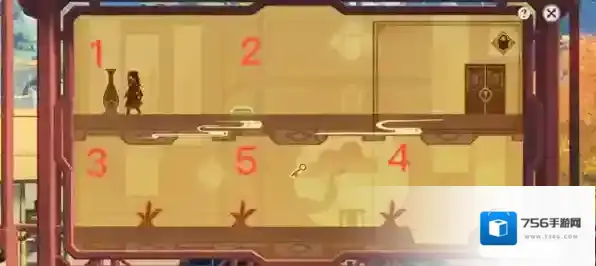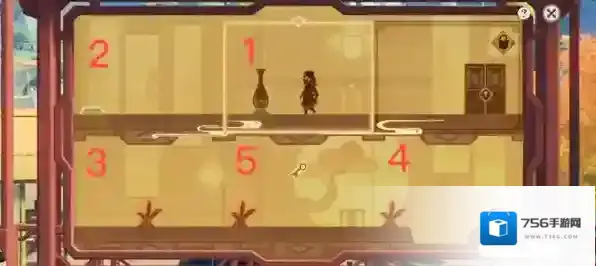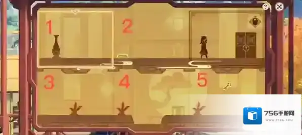 人物掉下去拿到花瓶上的钥匙后(背景2解锁),交换花瓶所在的背景5和右边的背景4