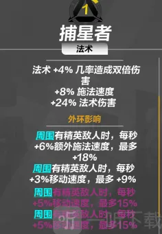举例:你在防御区的位置插一个传说品质的法术类契灵,则该区域内所有内环、中环、外环天赋均可从防御类属性切换为法术类属性,下图为传奇法术类契灵捕星者所能改变的对应区属性