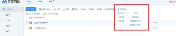 3、下图是安装完成的效果,在百度网盘选中文件,点击助手按钮,选择合适的方法直接下载文件。