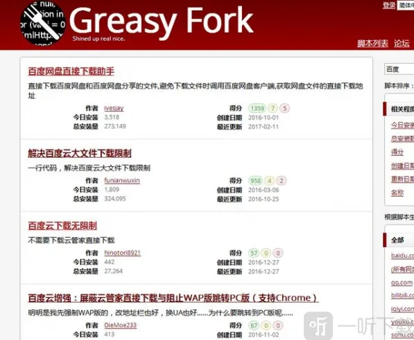 2. 安装好用户脚本管理器后,直接下载百度网盘直接下载助手。