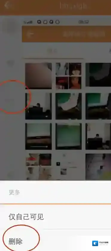 如果想要删除分享的照片就进入到个人资料窗口,点击要删除的照片,然后点击左侧的三个小点,然后在上拉菜单上面点击删除就可以删除了,如图所示: