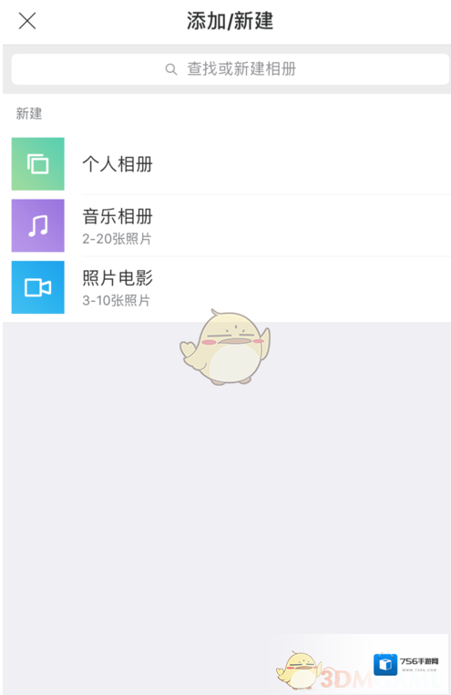 1.在首页选择自己想要制作“照片电影”“音乐相册”的照片,选择“新建”。