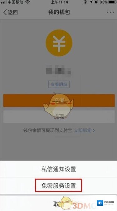 6、出现隐藏选项,点击“免密服务设置”进入,最后再点击“解约”输入微博支付密码,即成功取消。