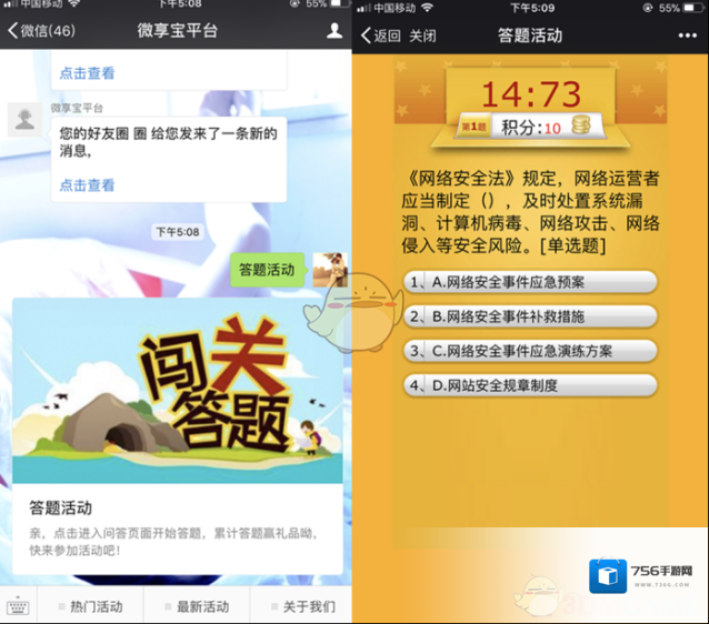 第四步:在公众号里回复活动的关键词触发活动,点击弹出的游戏封面进去就可以参与答题了。也可以将微信答题活动放公众号菜单里,供粉丝参与.