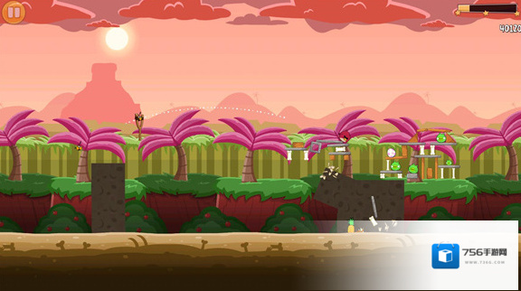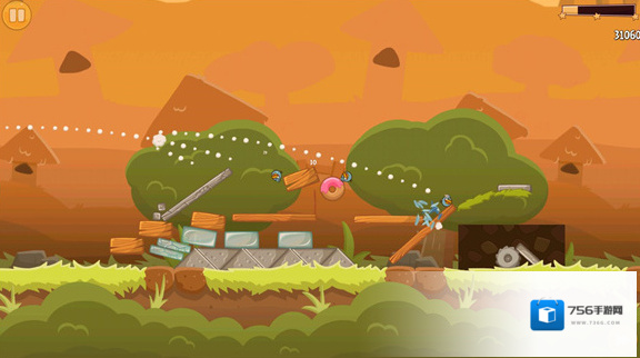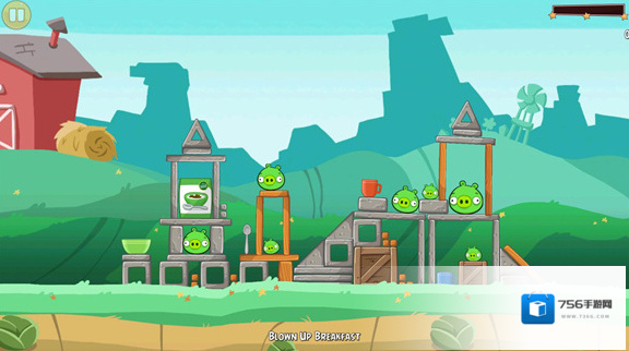 4、进入关卡后操作和原版一样,都是利用弹弓发射小鸟来摧毁障碍和小猪。