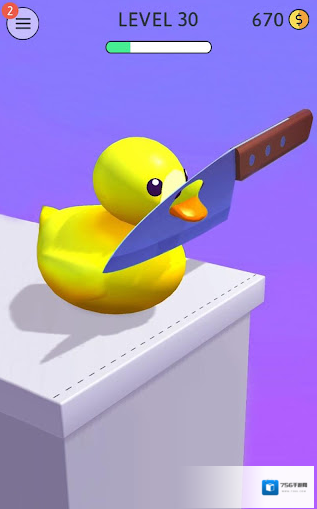 2、关卡中我们点击屏幕即可让刀落下,切割面前的物品。