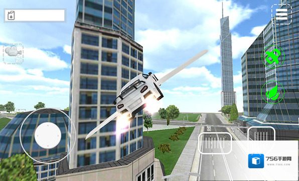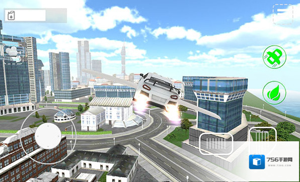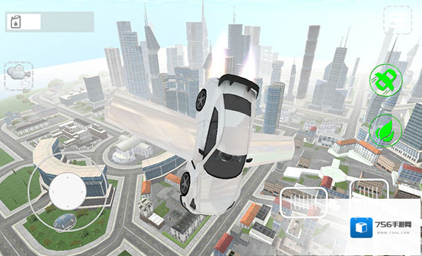 1、操控飞行汽车(界面显示空中姿态),通过左侧虚拟摇杆调整方向,右侧按键控制飞行,适应高空环境,开启飞行之旅。