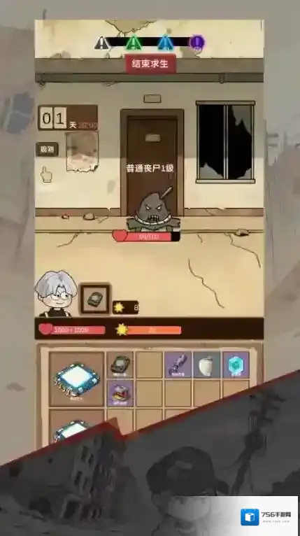 5、遇到僵尸后会进行战斗,背包里的物品越多你的战斗力越强,当僵尸血量为零就可以获得胜利继续探索。