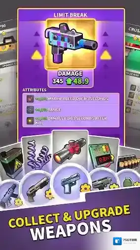 1、通过闯关我们还会获得宝箱奖励,开启宝箱就能获得随机的武器和材料,让你可以解锁升级更多武器,提高火力。
