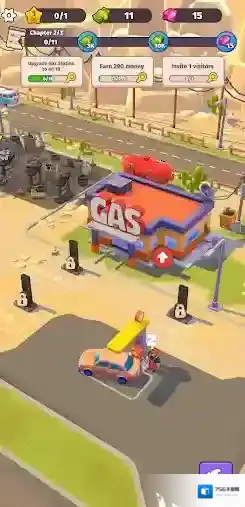 2、开启了加油站后,通过为来往的汽车加油来赚取金钱。