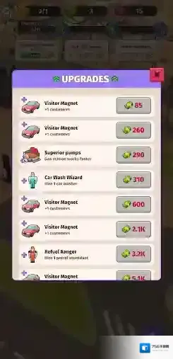 3、升级扩展你的加油站,招募更多的员工,不断地提升加油站的规模,建立起你的商业帝国。