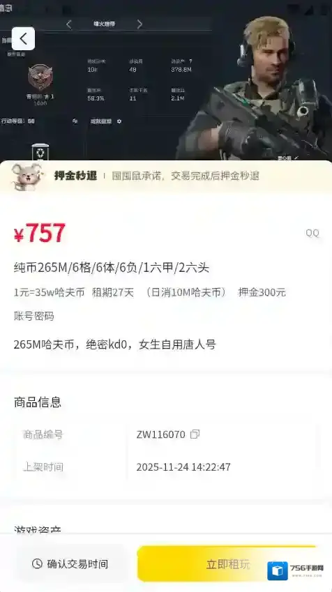 4、选择自己喜欢的账号进入详情页,点击“立即租玩”即可。