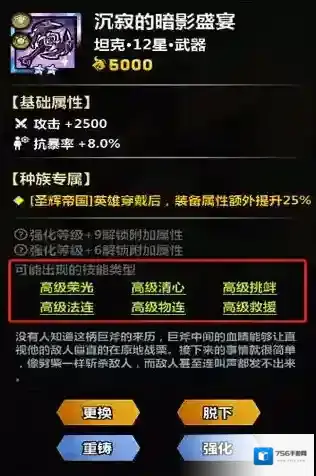 2、装备技能在装备强化至+12后会在以下装备技能中随机获得1个