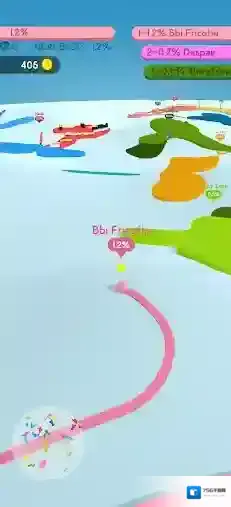 2、通过灵活的走位和策略的操作来圈出更大的领地,不断扩展你的颜色,赢下比赛获得丰富奖励。